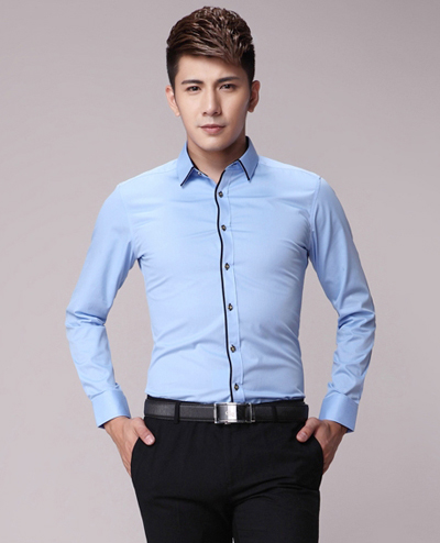 淺藍色 我們之所以把工作服這種顏色擺在第一位,是因為淺藍色在襯衫上得到了最廣泛的應用.這種顏色的襯衫不僅能夠和公務(wù)裝相搭配,而且也能和牛仔褲,絲光卡其布褲子或者燈心絨褲子以及幾乎各種各樣的領(lǐng)帶相搭配.這種顏色還能使各種膚色看起來更好看。